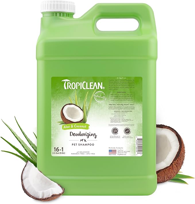 TropiClean Deodorizing Dog Shampoo for Smelly Dogs, Professional Dog Shampoo, Powerful Odor Control, Puppy Safe, Aloe & Coconut Scent, 2.5 Gallon
