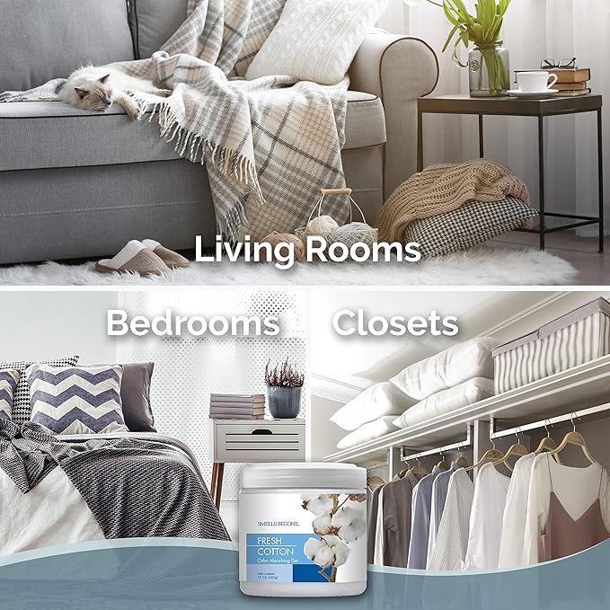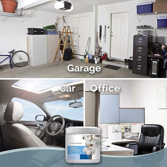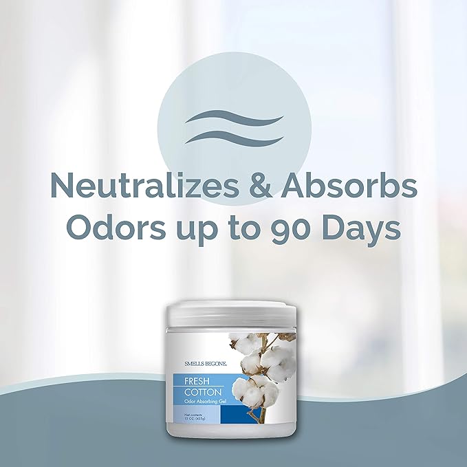 SMELLS BEGONE 15 oz Air Freshener Odor Absorber Gel - Absorbs Odor from Bathrooms, Cars, Pet Areas, Boats and RVs - Made with Essential Oils - Fresh Cotton Scent