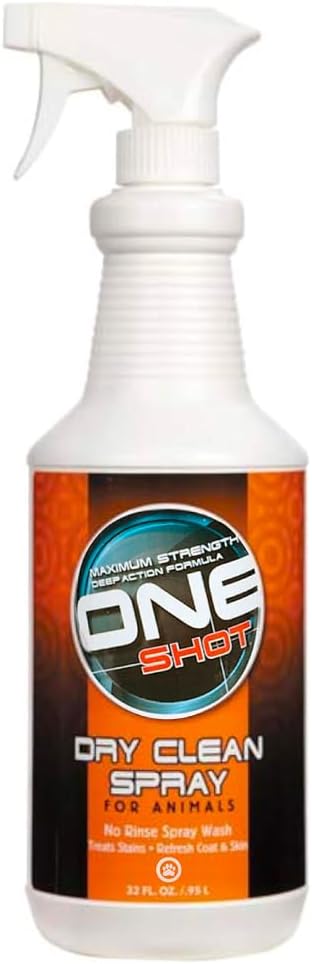 - For Any Dog, Cat, and Horse: With ONE SHOT Dry Clean Spray, winter bathing without warm water is now safe and easy. Great for removing tear stains, this shampoo spray is safe for any dog, cat, horse, kitten, or puppy. Available in a 32 oz. bottle.