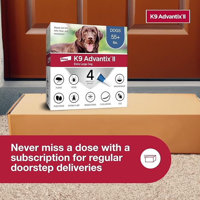 - K9 Advantix II Extra Large Dog 30-day treatment & prevention protects dogs over 55 lbs. from fleas, ticks, mosquitoes, biting flies and lice