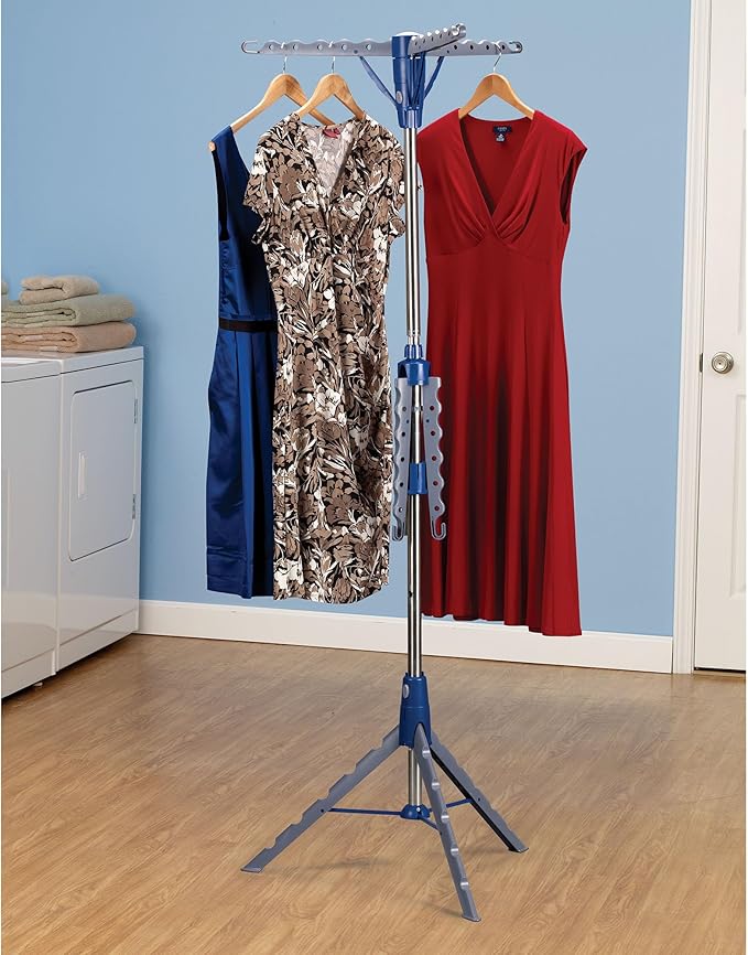 Household Essentials 5012-1 Portable 2-Tier Clothes Drying Rack Tri-pod | Dry Wet Laundry or Hang Clothes | Silver and Blue