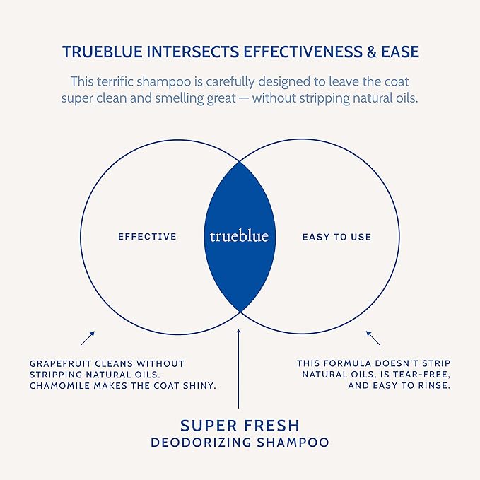 - THE BEST PET HEALTH AND BEAUTY PRODUCTS: All our TrueBlue products combine the best of Nature & Science. We worked with University Veterinarian Experts to pick the safest and most effective botanical ingredients and to create formulas that really work while being easy on the environment.