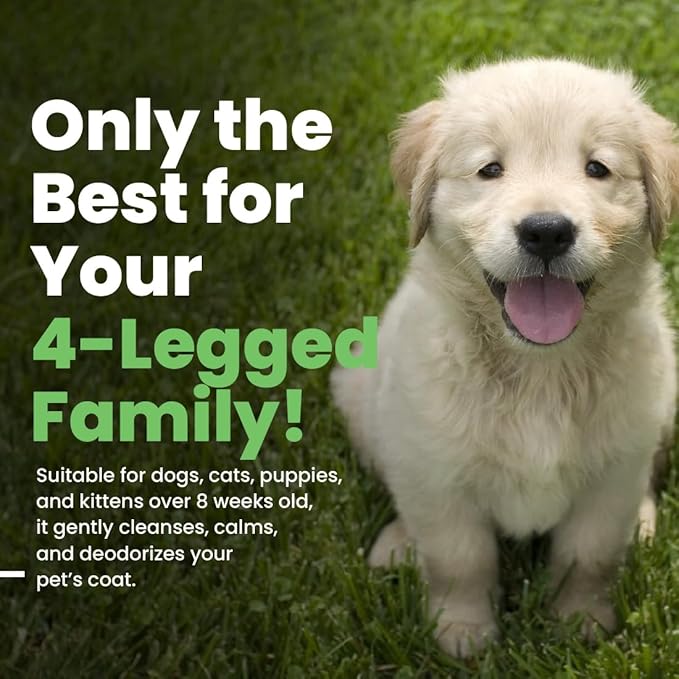 - Unique Formula: A hypoallergenic and tearless pet shampoo that calms and soothes your pet’s delicate coat and lets them enjoy a satisfying bath every time. The body wash deodorizes their fur and is a great addition to your puppy supplies.