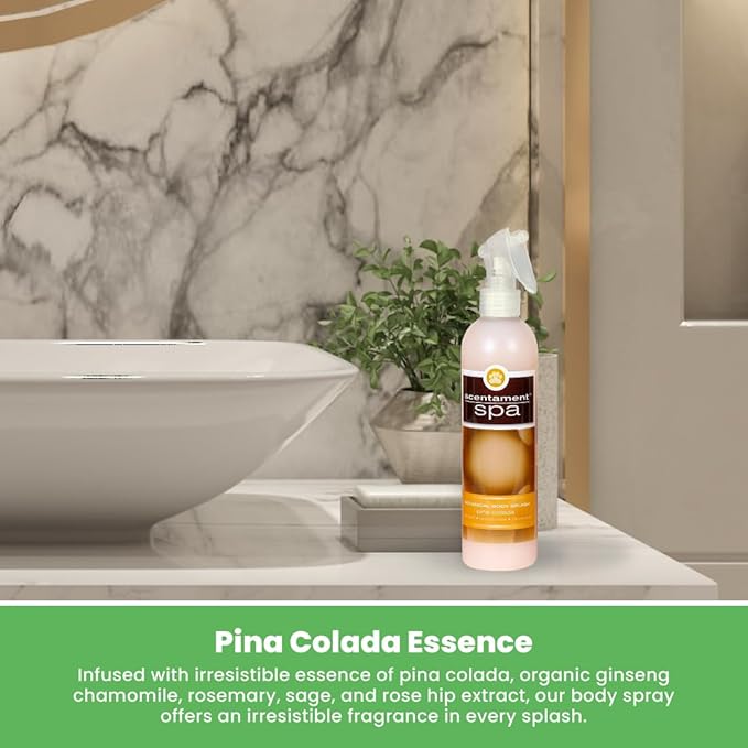 - Pina Colada Essence: Our ready-to-use body spray is infused with the irresistible essence of pina colada, along with vitamins A and E, organic ginseng, chamomile, rosemary, sage, and rose hip extract for an aromatic fragrance in every splash