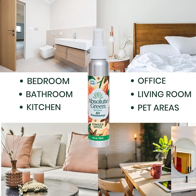 Absolute Green Air Freshener Room Spray, Odor Eliminator, Cover Smells, Ginger Spice Scent 4oz (Pack of 1)