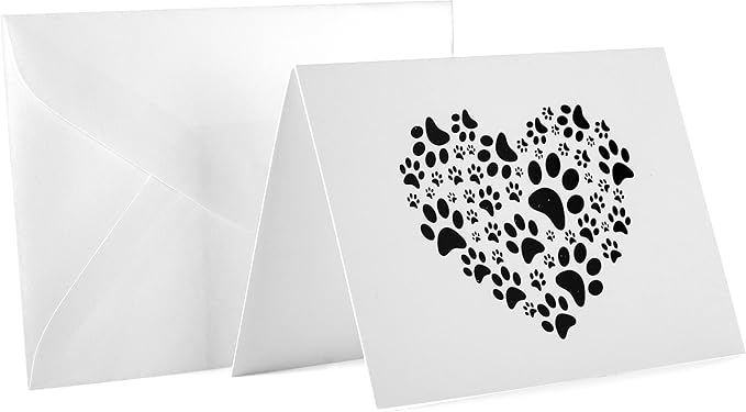 - PAW PRINT THANK YOU NOTES: Our paw print thank you cards are printed on high-quality card stock paper and treated with a glossy finish. Each thank you card has a cute heart made from paw print on the outside and is blank on the inside to be used for various occasions. Our set of note cards with envelopes can easily be sealed and sent via mail or included as part of a gift for an animal-loving friend, family member, or colleague.