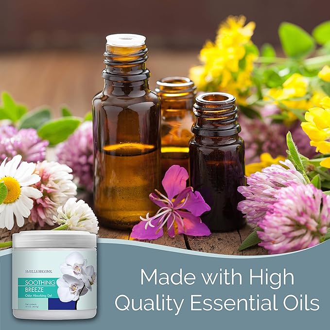 SMELLS BEGONE Air Freshener Odor Absorber Gel - Absorbs Odor from Bathrooms, Cars, Pet Areas, Boats and RVs - Made with Essential Oils - Soothing Breeze Scent - 15 Ounce