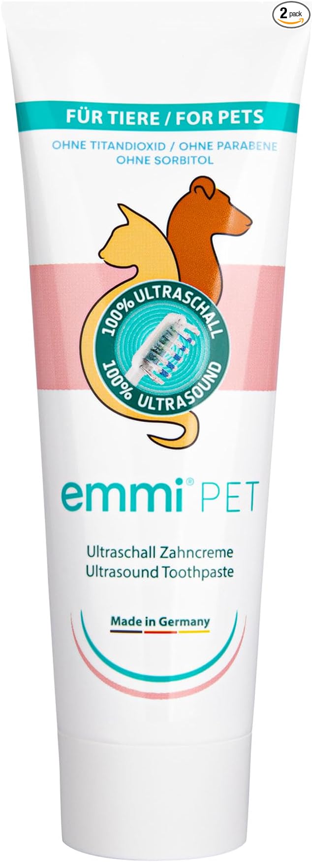 - Ideal for use with the emmi-pet toothbrush (available separately). The emmi-pet toothpaste can be used with almost all toothbrushes, but only with the emmi-pet ultrasound toothbrush you will achieve best deep-cleaning results. The emmi-pet ultrasound device operates with up to 96 million air vibrations, thereby activating the ultrasound toothpaste for best cleaning.