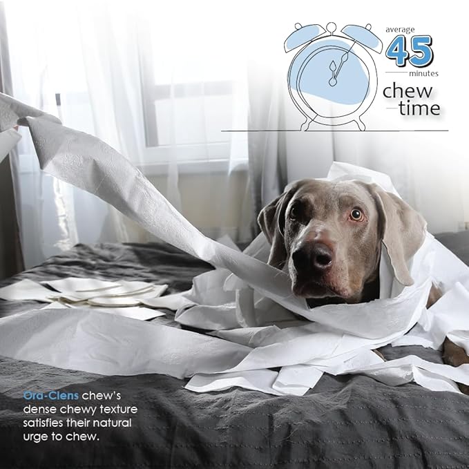 - š§¼ Effective Cleaning: Ora-clens Oral Hygiene Chews formula features a blend of the enzymes Lactoperoxidase and Glucose Oxidase, which help prevent plaque and tartar build up as well as promote clean teeth and fresh breath. With the enzymes coated onto the chews, your dog will gain benefits faster. Oral Hygiene Chews also feature an abrasive texture, which help scrub your dog's teeth while they chew.