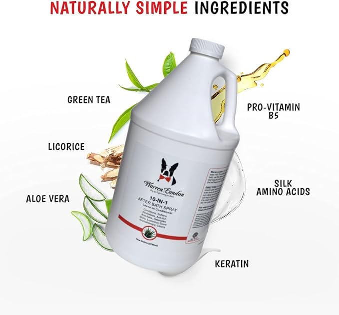 Warren London 10-in-1 After Bath Dog Spray | Dog Leave in Conditioner and Detangler | Pet Grooming Spray with Aloe Vera, Silk Amino Acids and Green Tea Extract | Made in USA | 1gal