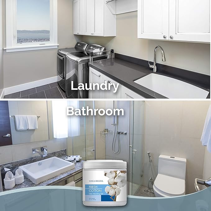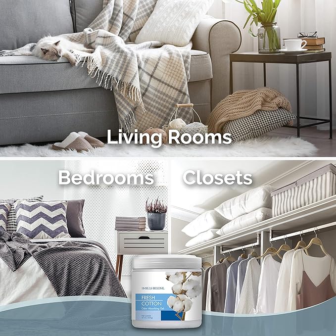 SMELLS BEGONE Air Freshener Odor Absorber Gel - 15 oz, Pack of 2 - Absorbs and Eliminates Odor in Pet Areas, Bathrooms, Cars, & Boats - Made with Essential Oils - Fresh Cotton Scent