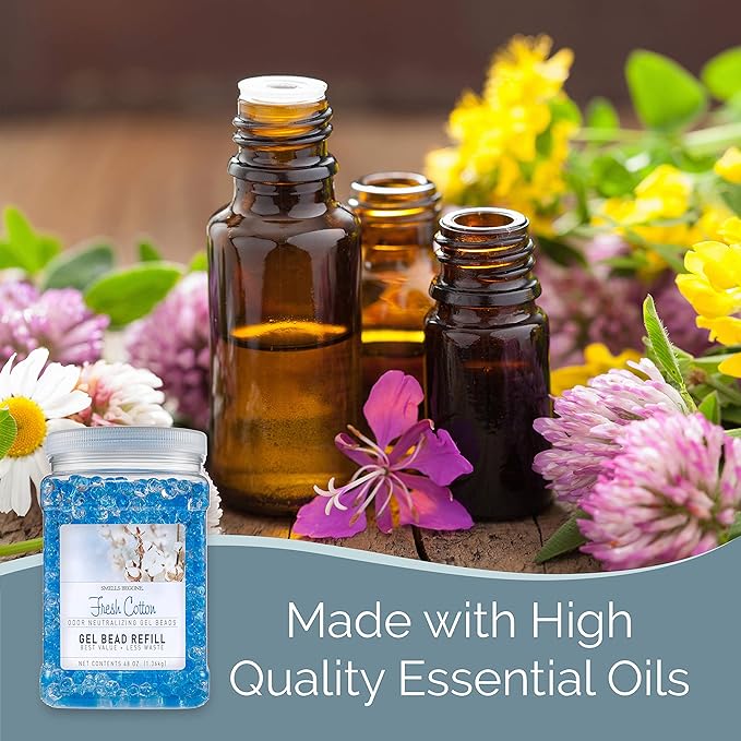 SMELLS BEGONE Odor Eliminator Gel Bead Value Pack - 72 oz - Air Freshener - Made with Essential Oils - Eliminates Odors in Bathrooms, Pet Areas, Cars, & Boats - Fresh Cotton Scent