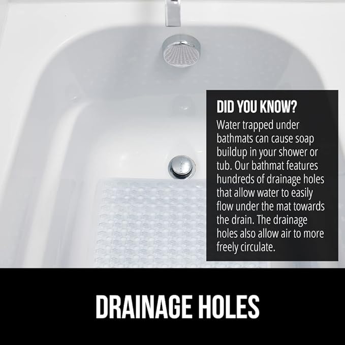 - EASY WATER DRAINAGE: hundreds of drainage holes allow for water to easily flow under the bath tub mat and toward the drain, helping to prevent water from sitting stagnant beneath the shower mat in your tub or shower