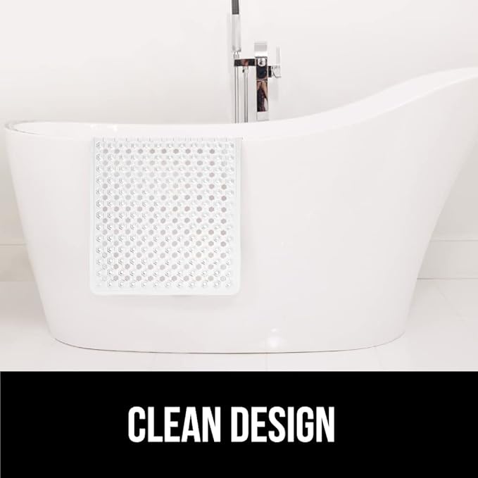GORILLA GRIP Patented Bath Tub Shower Mat, Machine Washable Bathtub Floor Liner Mats, Suction Cups and Drain Holes to Keep Tubs Clean, Soft on Feet, Bathroom Essentials, 35x16 Inch, Clear