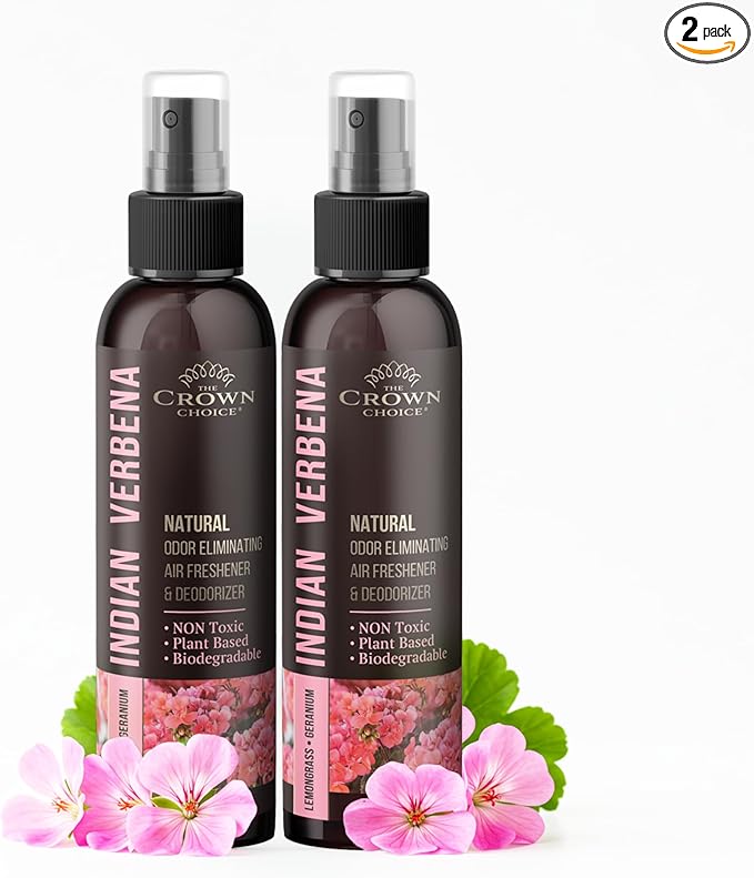 Natural Air Freshener Spray—Geranium & Lemongrass Odor Eliminator—Non-Toxic Essential Oil Deodorizer Spray for Home,Toilet,Room,Lounge,Laundry,Cabinet,Fabric;Safe for Kids & Pets—2PK- 4Oz each