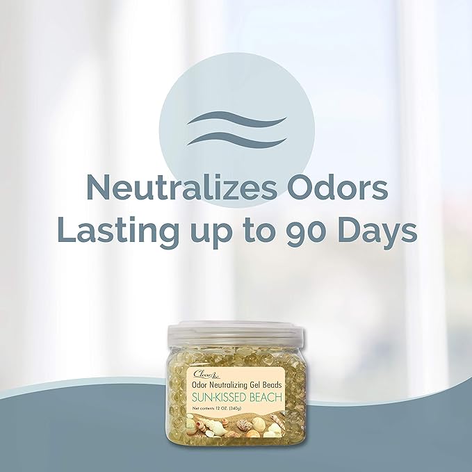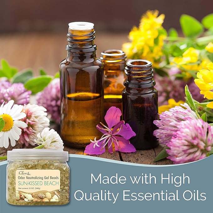 Clear Air Odor Eliminator Gel Beads - 12 oz, Pack of 2 - Air Freshener Made with Essential Oils - Eliminates Odors in Bathrooms, Cars, Boats, RVs & Pet Areas - Sun-Kissed Beach Scent