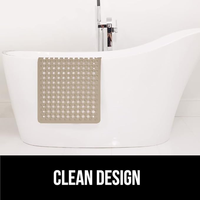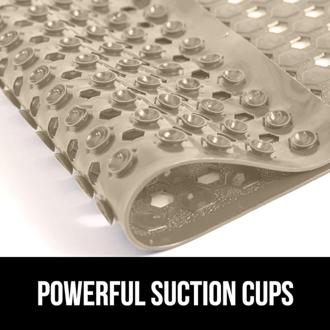 GORILLA GRIP Patented Bath Tub Shower Mat, Machine Washable Bathtub Floor Liner Mats, Suction Cups and Drain Holes to Keep Tubs Clean, Soft on Feet, Bathroom Essentials, 35x16 Inch, Beige