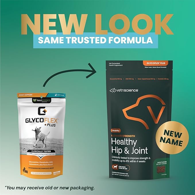 - ULTIMATE JOINT SUPPORT FOR DOGS: VetriScience Ultimate Strength Hip & Joint Supplement, GlycoFlex Plus delivers our most powerful joint health formula, combining glucosamine HCl, MSM, chondroitin sulfate, and green-lipped mussel to help maintain hip and joint comfort, flexibility, and mobility in dogs needing maximum strength support.