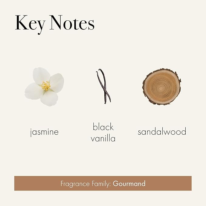 - SCENT - Amber Black Vanilla features orange, raspberry, and spicy clove that evolve into an elaborate blend of sheer jasmine and cassis. Black vanilla, amber, and sandalwood create a warm background to this welcoming scent.