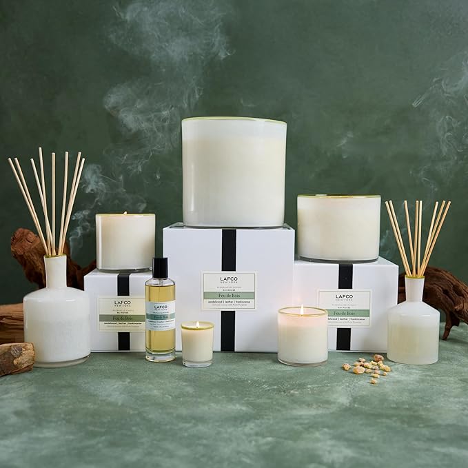 LAFCO New York 3-Wick Candle, Feu de Bois - 30 oz - 120-Hour Burn Time - Reusable, Hand Blown Glass Vessel - Made in The USA