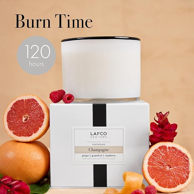 LAFCO New York 3-Wick Candle, Champagne - 30 oz - 120-Hour Burn Time - Reusable, Hand Blown Glass Vessel - Made in The USA
