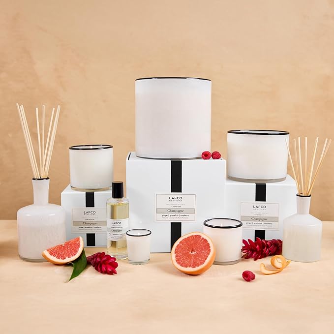 - SCENT - Champagne features fresh orange & mandarin zest, raspberry & Tuscan lemon, and a twist of grapefruit & ginger. Essences of rose and neroli, woven with verbena, make the scent effervescent and bright.