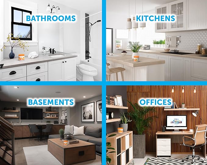 - WORKS ANYWHERE: Safe for use in medium-sized spaces (kitchens, bathrooms, basements, laundry areas, & more) around home, office, kids and pets – without batteries, plugs, refills, or sprays