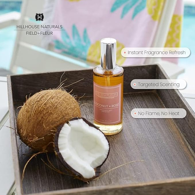 FIELD FLEUR Natural Room and Linen Spray, Non-Toxic Fragrance Mist with Scents of dewy fruits, green citrus, jasmine & white flowers– Long-Lasting Room Spray for Home – Made in USA, 4oz - Coconut Rose