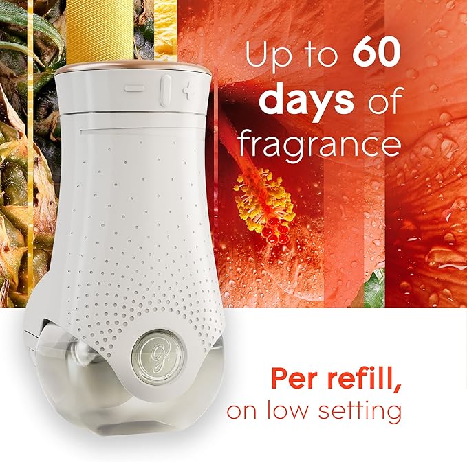 - Enjoy up to 60 days of fragrance* with Glade PlugIn Refills (*per refill, on low setting)