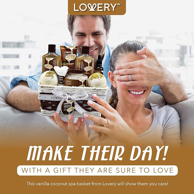 Gifts For Women Gift Basket for Womenβ 9 Piece Christmas Gifts Set of Vanilla Coconut Home Spa Set, Includes Fragrant Lotions, Extra Large Bath Bombs, Coconut Oil, Luxurious Holiday Bath & Body Sets