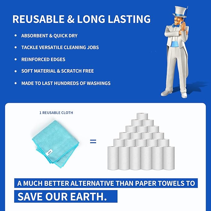 - ABSORBENT & LINT FREE - Made of 85% Polyester, 15% Nylon. These non-abrasive cleaning rags can soak up water from the countertop and tables instantly and without lint or streaks left behind. Clean with or without water, from worktops, appliances to kitchens, bathrooms, mirrors etc, they will make your house sparkling.