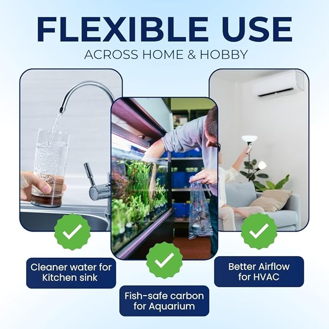 - š§ VERSATILE LIQUID PHASE APPLICATIONS: Tailored for diverse liquid phase applications, this granular activated carbon excels in removing organics from water streams. Its acid-washed composition makes it particularly effective for water filtration systems, including aquariums, fish ponds, and potable water setups.