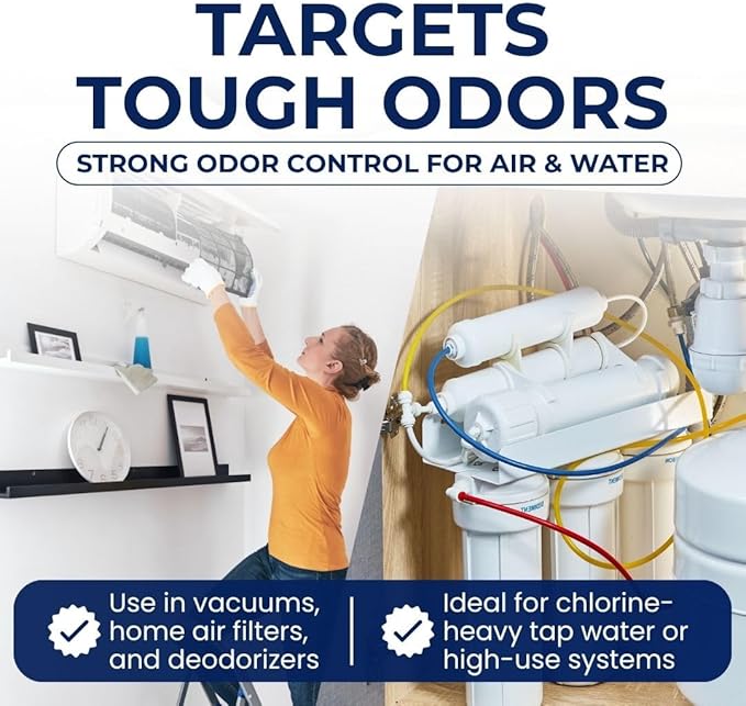 - š§ ENHANCED REMOVAL CAPACITY: Experience superior performance with this activated carbon's high capacity for removing chlorine, light organic chemicals, and undesirable tastes and odors. It is an ideal choice for achieving clean and refreshing water and air.