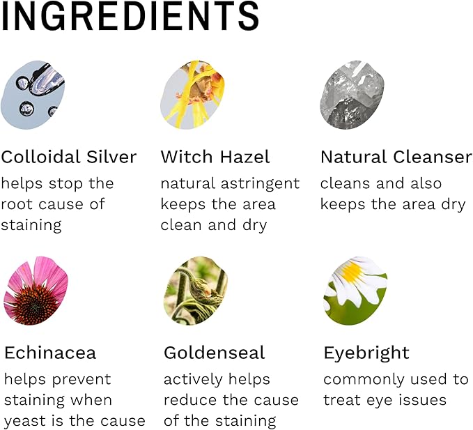 - REMOVE TEARS: Safely remove tear stains with non-irritating and 100% natural ingredients including Colloidal Silver. Remove tear stains in 7 days with daily use. For tear free eyes, use weekly once original tear stains are removed. Apply directly around the eyes.