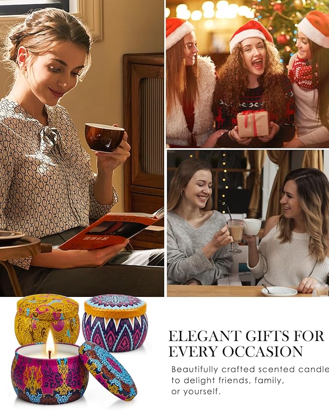 - 【Perfect Christmas Gift for Women】- Looking for a thoughtful holiday gift? This 4-pack scented candle set is the perfect Christmas gift for women — moms, sisters, girlfriends, or friends. Beautifully packaged and ready to give, it brings warmth, light, and festive cheer to every home this holiday season.