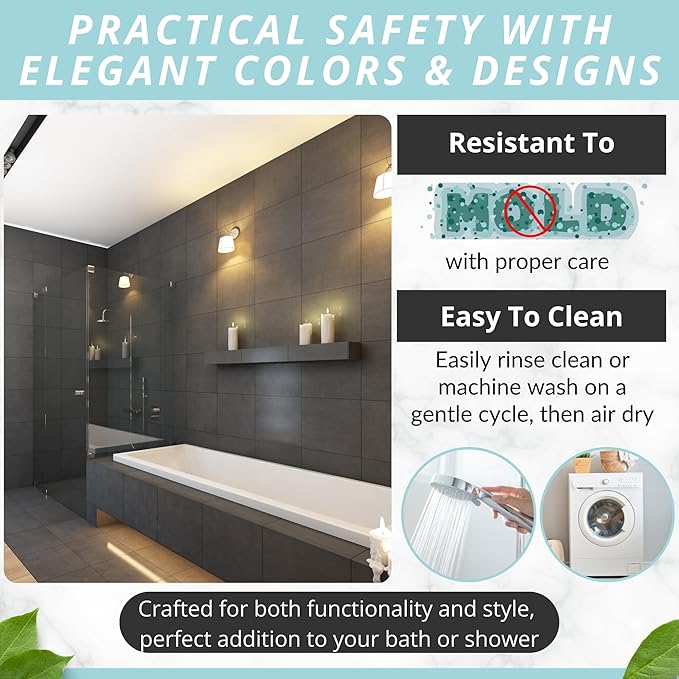 - EASY TO CLEAN keeping our slip-resistant bath mat clean is effortless. Rinse with water and soap or toss it in the washing machine for a cold wash. Crafted from high-quality and safe PVC material, it's designed to endure daily use while maintaining its integrity over time, ensuring a durable and long-lasting solution for your bathroom needs