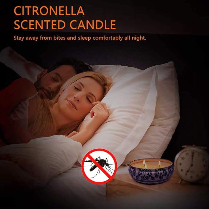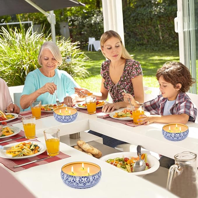 - 100% Soy Wax and Smokeless: The portable blue and white metal tin citronella outdoor candles are made with naturally biodegradable and eco-friendly pure soy wax and citronella oil.