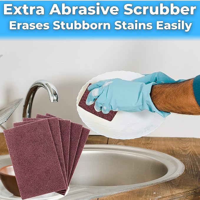 - PROTECT YOUR FAVORITE STAINLESS COOKWARE. Our 6" x 9" scrubbies are abrasive enough to remove grease and stains from dishes and bakeware easily, and other kitchenwares.