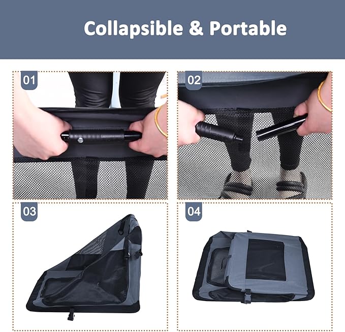 - Easy To Install: Jespet foldable soft dog kennel can easily install and fold. Collapsible Bars with retractable Springs make setup simple and storage efficient.