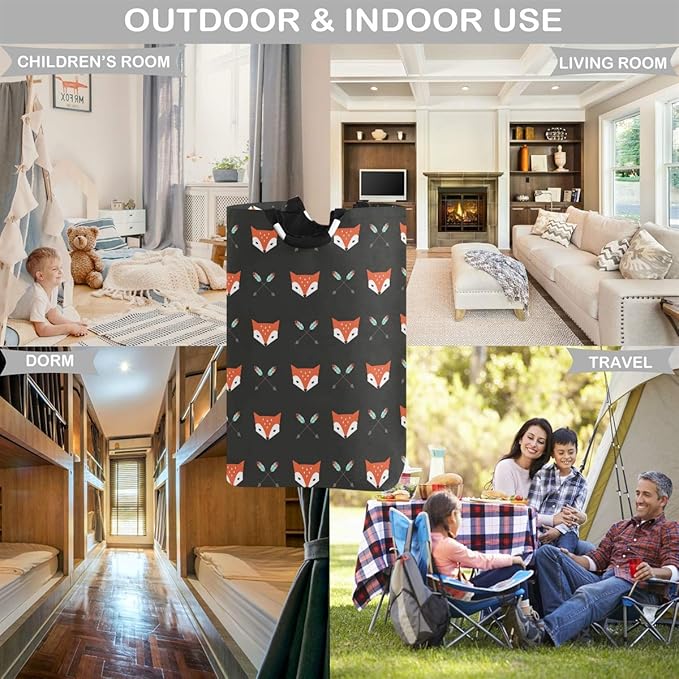 visesunny Collapsible Laundry Basket Foxes And Arrow Animal Large Laundry Hamper Oxford Fabric Dirty Clothes Toy Organizer with Handle For Bathroom Bedroom Kids Room Dorm