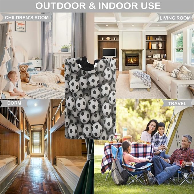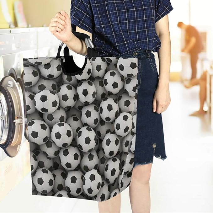 visesunny Collapsible Laundry Basket Soccer Ball 3D Print Large Laundry Hamper Oxford Fabric Dirty Clothes Toy Organizer with Handle For Bathroom Bedroom Kids Room Dorm
