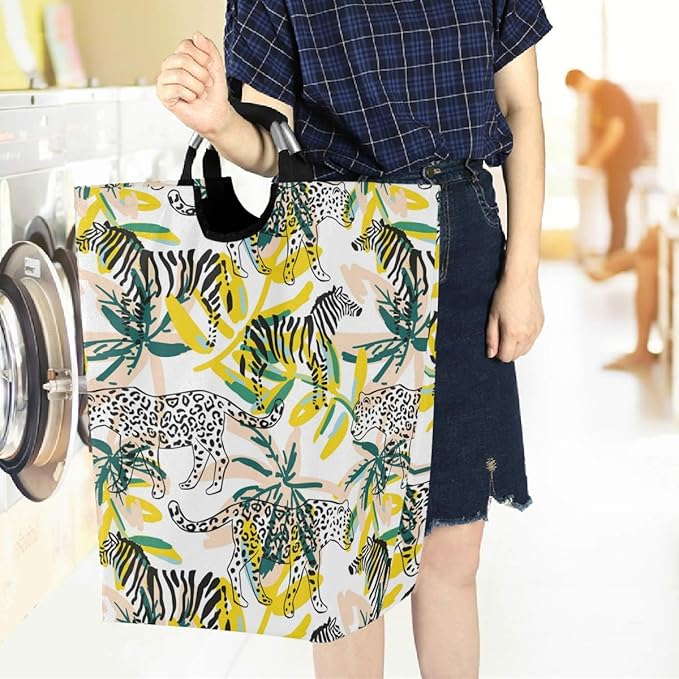 visesunny Collapsible Laundry Basket Tropical Leopard Zebra Animal Large Laundry Hamper with Handle Toys and Clothing Organization for Bathroom, Bedroom, Home, Dorm, Travel