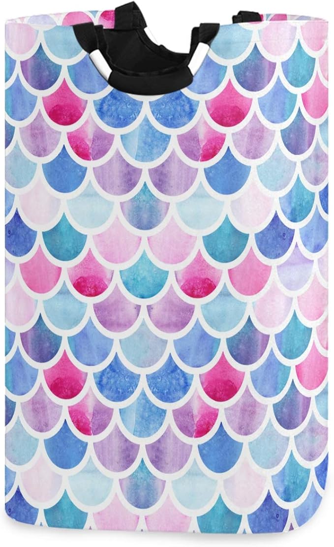 visesunny Collapsible Laundry Basket Mermaid Rainbow Scale Large Laundry Hamper with Handle Toys and Clothing Organization for Bathroom, Bedroom, Home, Dorm, Travel