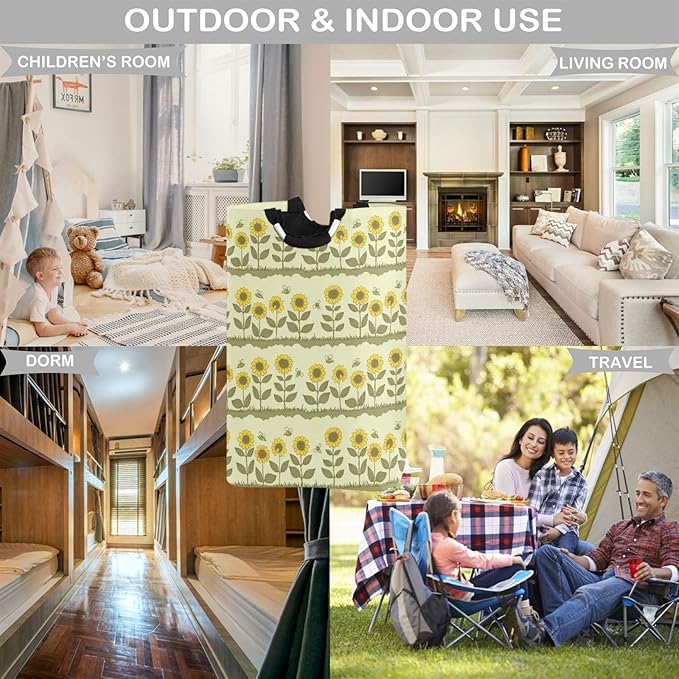 visesunny Retro Sunflower Floral Large Laundry Hamper with Handle Foldable Laundry Basket Toys and Clothing Organization for Bathroom, Bedroom, Home, Dorm, Travel
