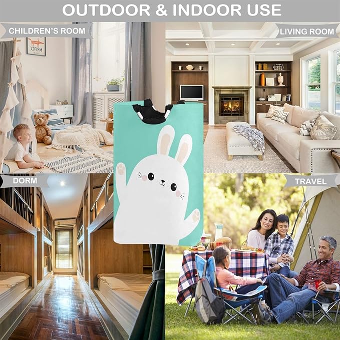visesunny Easter White Rabbit Bunny Animal Large Laundry Hamper with Handle Foldable Durable Clothes Hamper Laundry Bag Toy Bin for Bathroom, Bedroom, Dorm, Travel