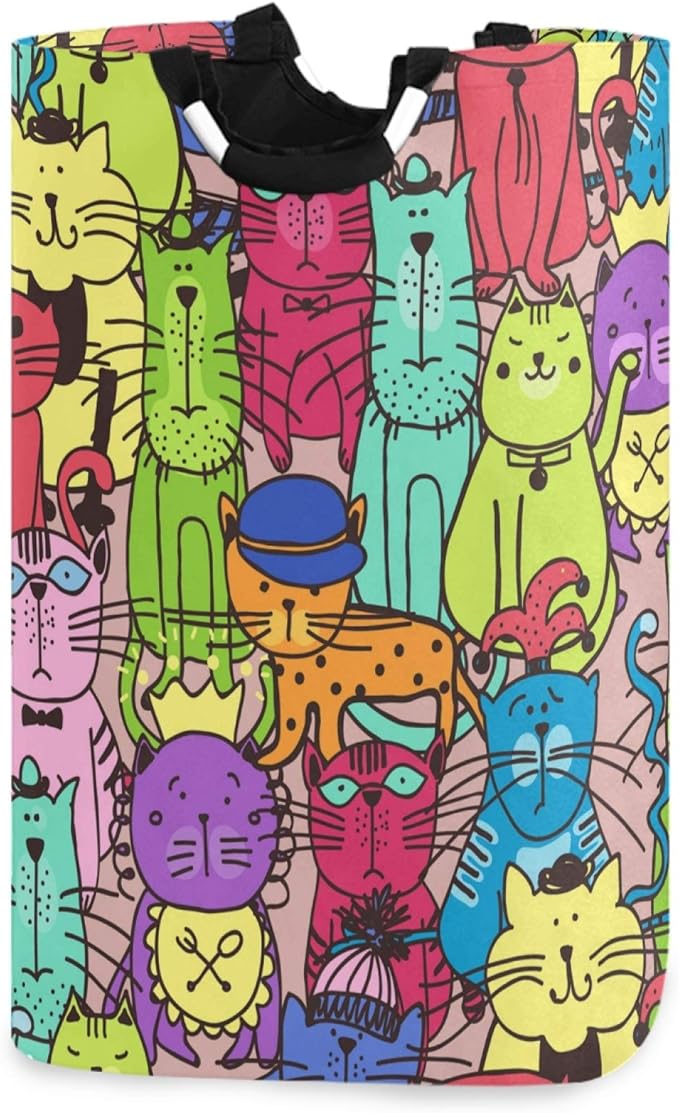 visesunny Doodle Cat Pet Kitten Animal Large Laundry Hamper with Handle Foldable Durable Clothes Hamper Laundry Bag Toy Bin for Bathroom, Bedroom, Dorm, Travel