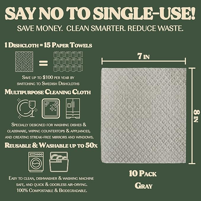 - ABSORBENT & MULTIPURPOSE — Clean up messes with ease using our highly absorbent Swedish dishcloths for kitchen. These versatile Swedish towels absorb up to 20x their weight, making them perfect for any mess.