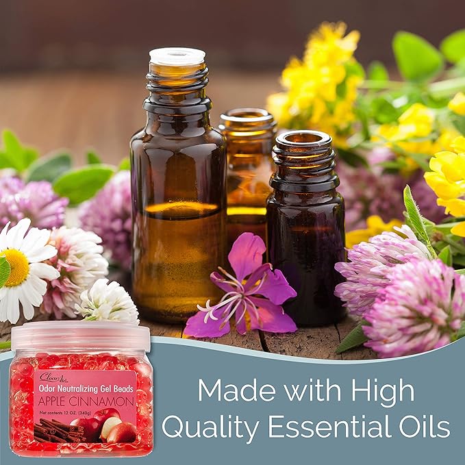 Clear Air Odor Eliminator Gel Beads - 12 oz, Pack of 2 - Air Freshener Made with Essential Oils - Eliminates Odors in Bathrooms, Cars, Boats, RVs & Pet Areas - Apple Cinnamon Scent