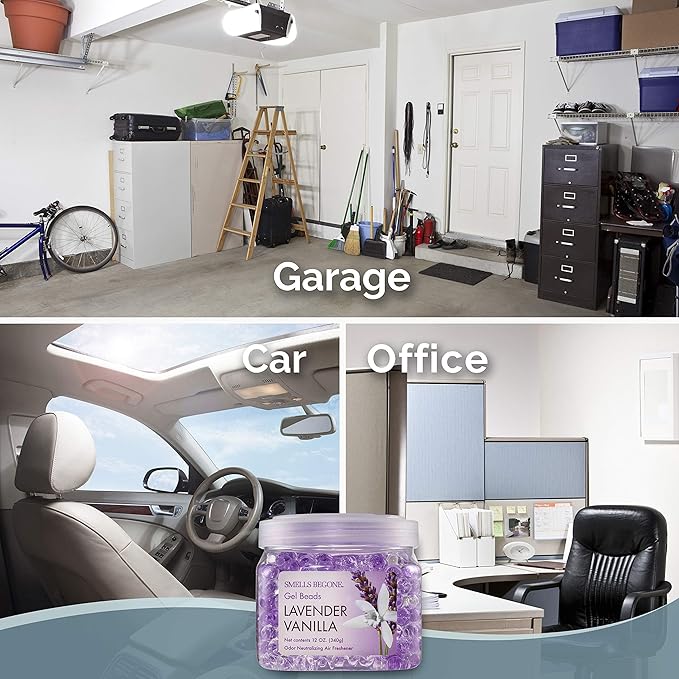 SMELLS BEGONE Odor Eliminator Gel Beads - 12 oz, Pack of 2 - Eliminates Odor in Bathrooms, Cars, Boats, RVs & Pet Areas - Air Freshener - Made with Essential Oils - Lavender Vanilla Scent