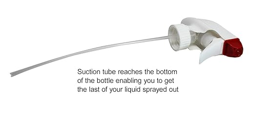 - ADJUSTABLE TRIGGER SPRAYER DESIGN- The sprayer exterior sides fit your hand comfortably, eliminating hand fatigue Adjustable red nozzle turns easily letting you switch from mist, stream or to off; Pull trigger has a short effortless squeeze reducing finger fatigue ; Suction dip tube reaches the bottom of the bottle avoiding waste and spraying every last drop!